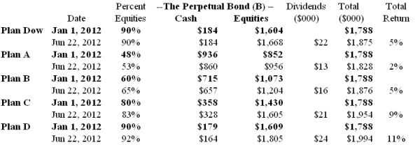 The Perpetual Bond (B) which we started in 2009 with $1,153,000 in cash of which $169,000 was left in cash by the end of the first quarter and $985,000 was allocated to the purchase of 1,000 shares of each of, initially, twenty-nine companies in the Dow Jones Industrial Companies, ended up (on January 1, 2012) as $936,000 in cash and a portfolio of fourteen companies (please see Exhibit 1) worth $852,000 at that time, and a further earned dividend of $83,000 over three years (which is available but not used here). Those results are summarized as Plan A, January 1, 2012 in the above table, Exhibit 3.