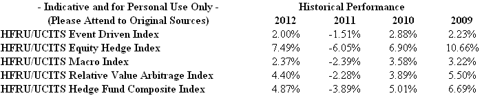 Exhibit 1: UCITS and HFRI Indicative Data – Not Approved for General Use