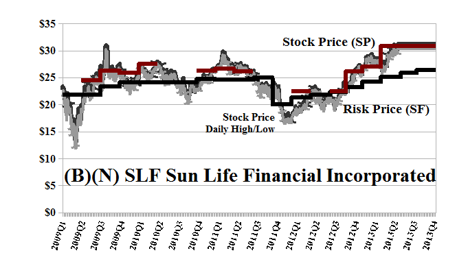 The rest of us have to earn it and the market wrote down Sun Life in December last year because of the announcement that the company was intending to sell its US annuity business (Reuters, December 17, 2012, Sun Life sells U.S. annuity business, shares drop) and that would affect the earnings and because so much investment is tied to the Capital Assets Pricing Model (CAPM) that is widely used by hedge funds, mutual funds, and so forth, a small change in a company’s stock price can start an even larger one as the models begin to sell the stock.