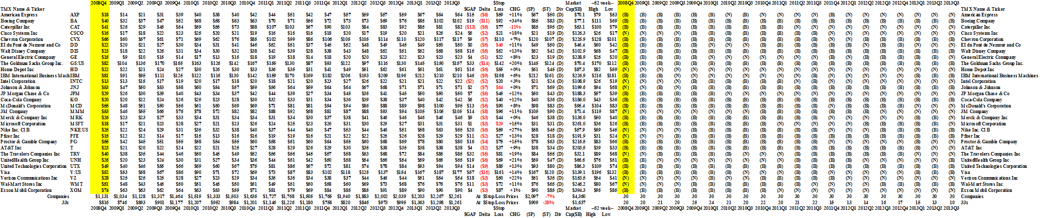 All of these results in the Dow pale beside those of the NASDAQ 100 companies which tend to be in the triple digits over five years, unless we were “buying low and selling high”.