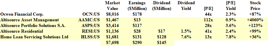 It’s estimated that there is still about $1 trillion (10 million $100,000 loans) in delinquent mortgage loans and the largest banks are stepping away from that business which was dominated by the US Savings & Loan business in 80s and 90s, and now, once again, needs some new attention and it seems that Ocwen and its subsidiaries are on the leading edge of new models for the origination and servicing of home mortgages (ibid, The Street).