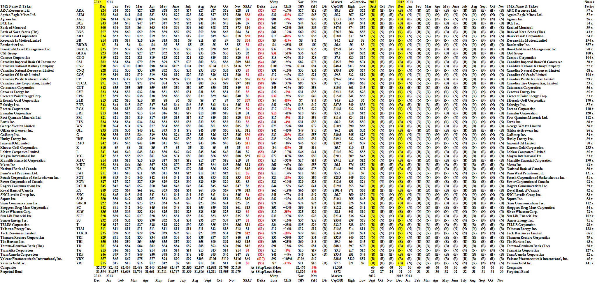 For example, $1 billion invested in each of the sixty companies of the S&P TSX 60 has returned +10.5% this year plus dividends of another +3.1% and the same investment managed as a Perpetual Bond™ with 100% capital safety has returned +25% plus dividends and will not return less than that for the rest of the year. Please see Exhibit 1 below and click on the links TSX 60 Prices & Portfolio and Portfolio & Cash Flow for more detail.