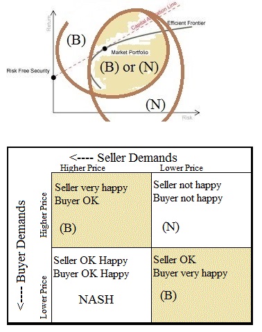 Instead of a “line in the sand”, we have the open-ended (B)(N)-diagram that defines the mechanics of “risk aversion” and the really efficient frontier.