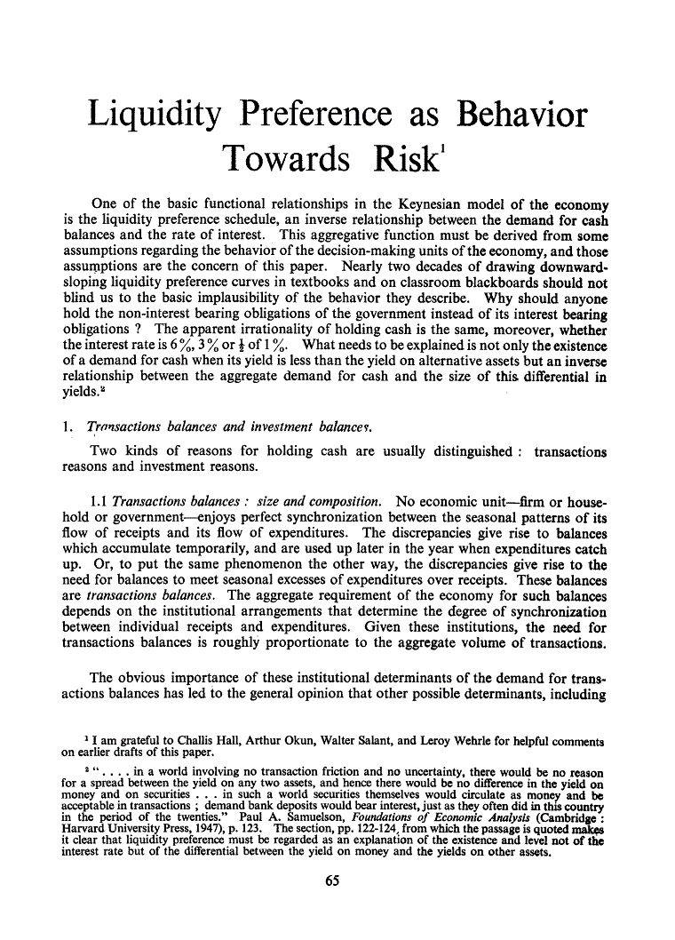 James Tobin, the economist, defined the issue quite clearly in a seminal article of 1958, at about the same time that economics came to be dominated by “new tools” in the differential calculus that have only one outcome – optimisation – and its progeny, the “efficient frontier” which doesn’t exist in the normal and real world discourse of commerce and our senses and that make sense to everyone but the economists and their legions of provably naive calculating acolytes – who aren’t investors.