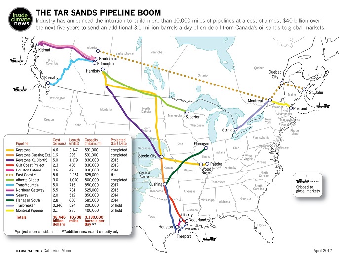 Obviously (ibid, The Wall Street Journal), the path to “oil export superpower” (ibid, The National Post) is not through the US and if the Keystone XL is built, it is only a stepping-stone and would increase the current shipments to and through the US by only about 25% (Reuters, January 16, 2014, Canada loses patience on Keystone XL, tells U.S. to decide).