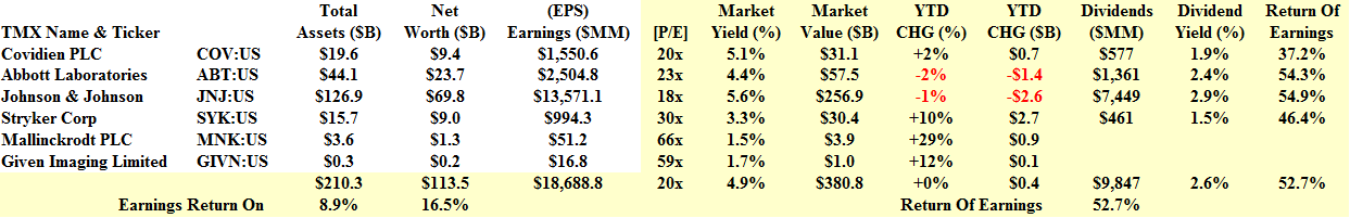 The industry also returned 50% of its earnings and delivered a 16% return on the shareholders equity which – one must admit -few investors know how to get on their own money. Those who presciently bought in early last year, raked in +28% and $84 billion on the industry and they’ve almost all been in the Perpetual Bond™ since December 2012 and that took down +35% plus dividends and is up +14% so far this year (partially on the back of Given Imaging which just got bought up by Covidien). Please see Exhibit 2 and 3 below.