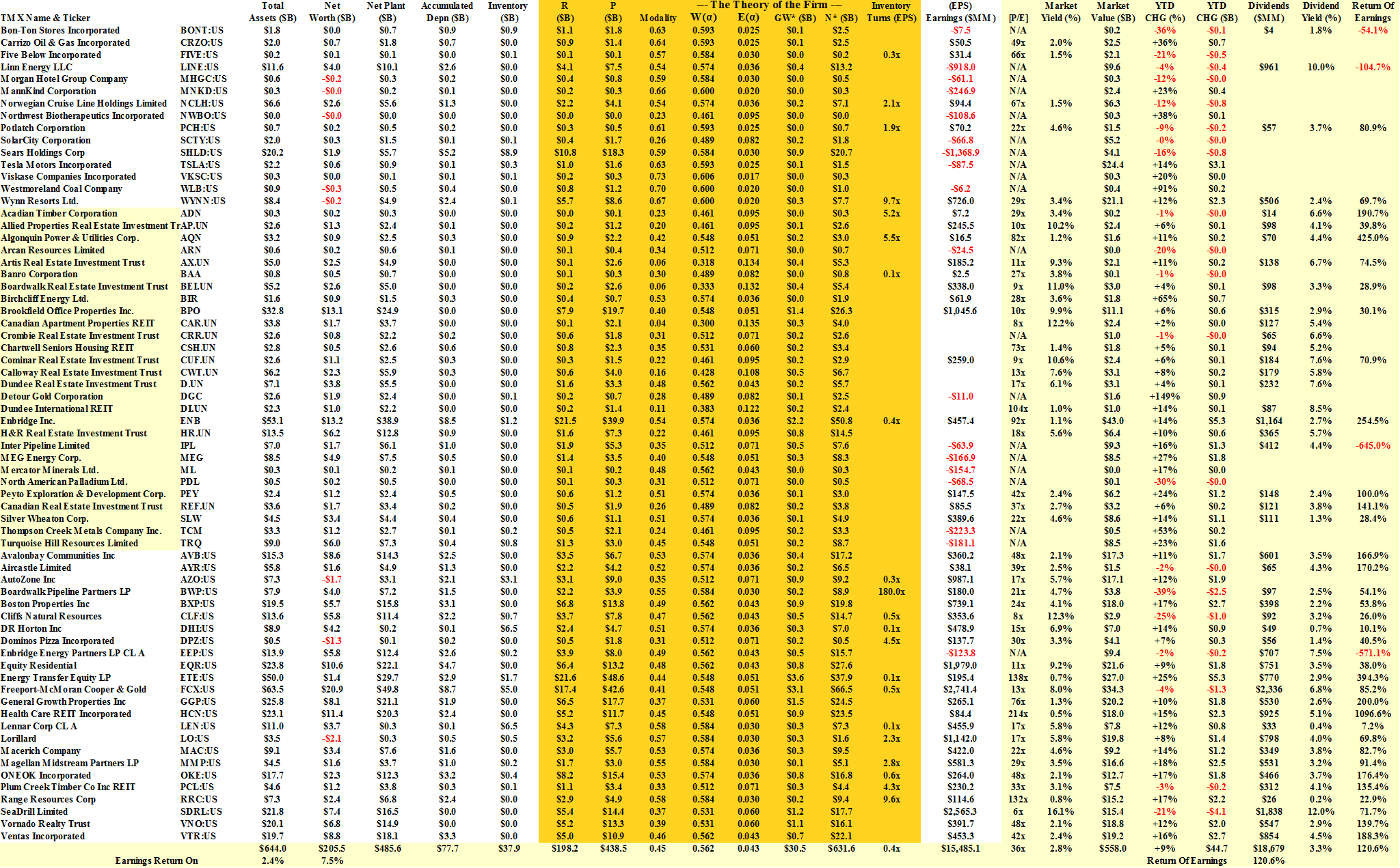 In Canada, they’re only paying $15 ($133 billion/$9 billion) for their Coase Dividend and the expected growth in net worth is from the current $75 billion (N) to $133 billion (N*) and all that these companies have to do is to keep on existing Monday to Friday every day; but that says nothing at all about the stock price which is still “overvalued” (and trading at [P/E] 57× earnings as well) and these companies returned 170% ($4 billion) of their earnings last year ($2.3 billion) for a dividend yield of 3%. Possibly they will do it again this year if they could just borrow more money or float more stock?
