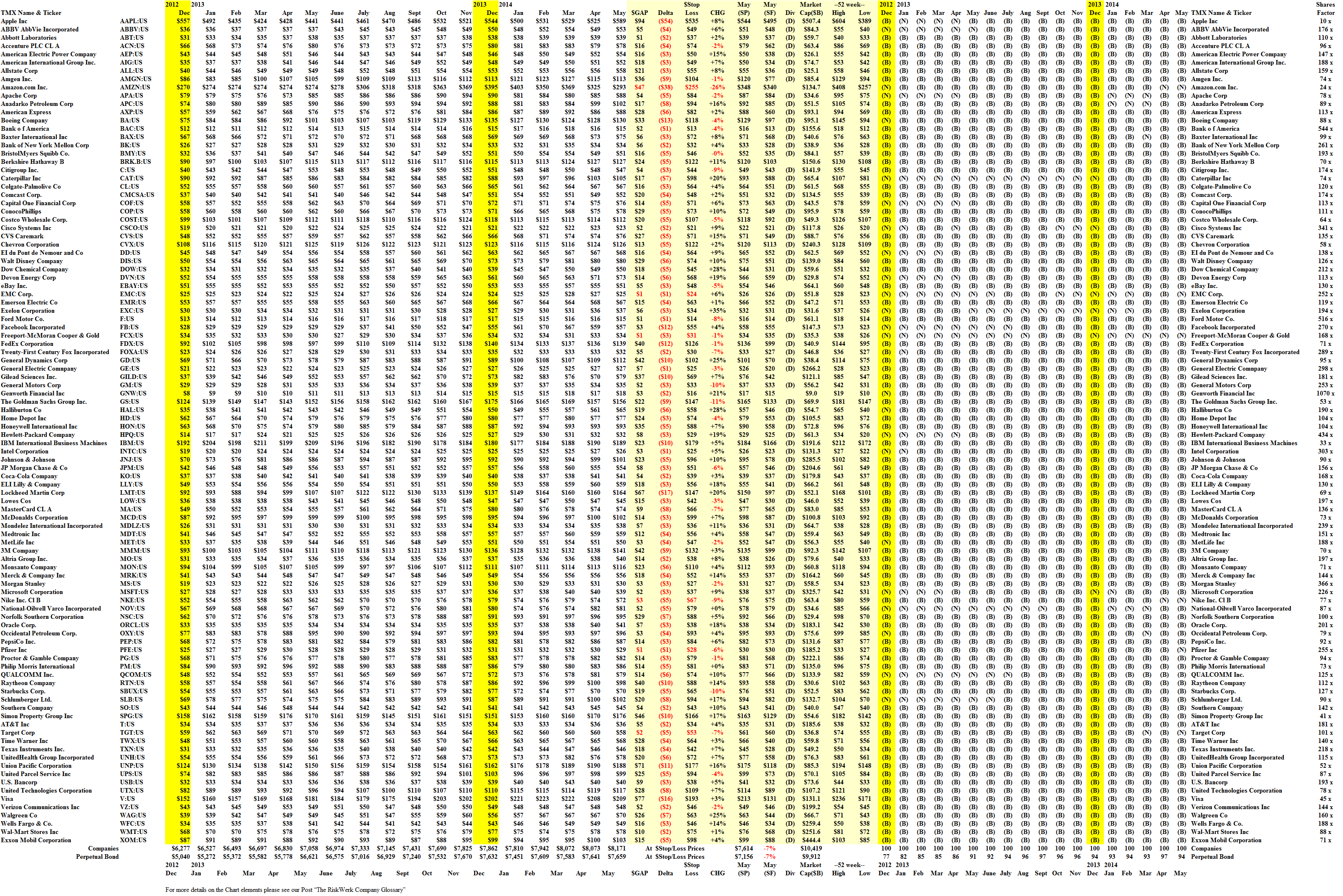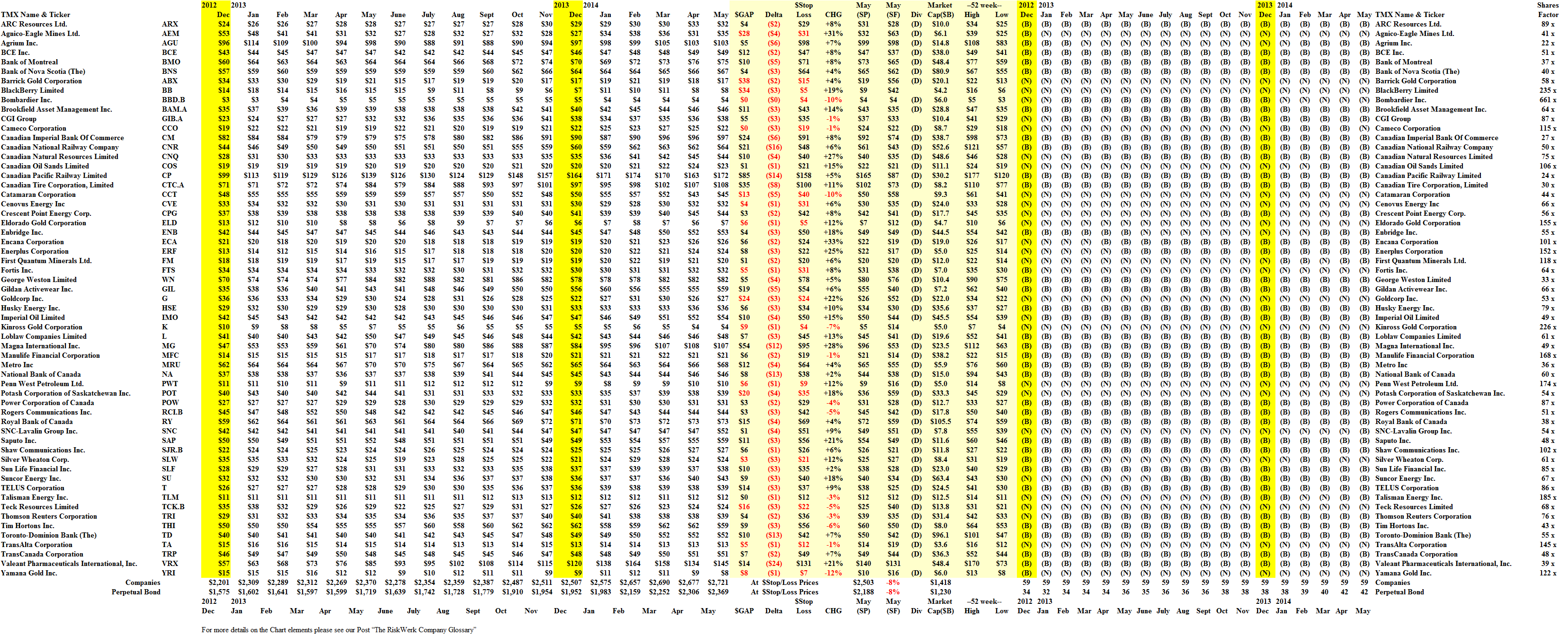 For more of the details, please click on the links (and again to make them larger if required) “(B)(N) The S&P 100 – Prices & Portfolio – May 2014“, “The S&P 100 – Portfolio & Cash Flow Summary – May 2014“, “The S&P TSX 60 – Prices & Portfolio – May 2014” and “The S&P TSX 60 – Portfolio & Cash Flow Summary – May 2014“.