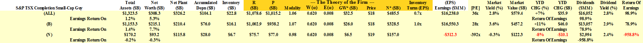 The S&P TSX Completion Index has a basketful of them and we thought that we’d take a look to see how we’re doing in that market; please see Exhibit 1 below for the modern fundamentals.