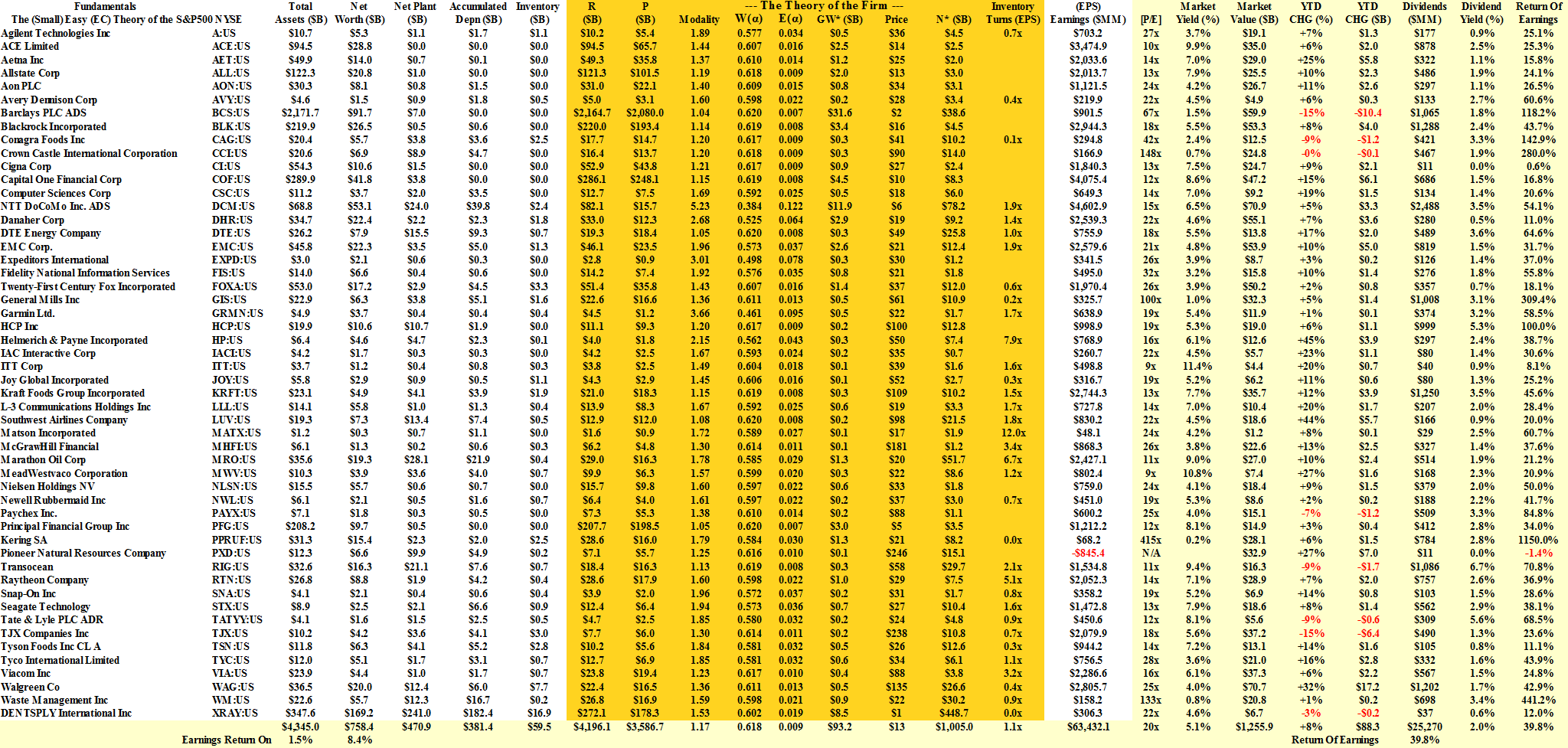 Exhibit 1: The (Small) Easy (EC) Theory of the S&P 500 NYSE – Fundamentals – July 2014