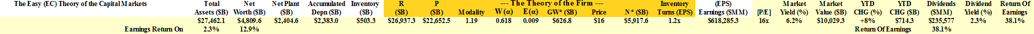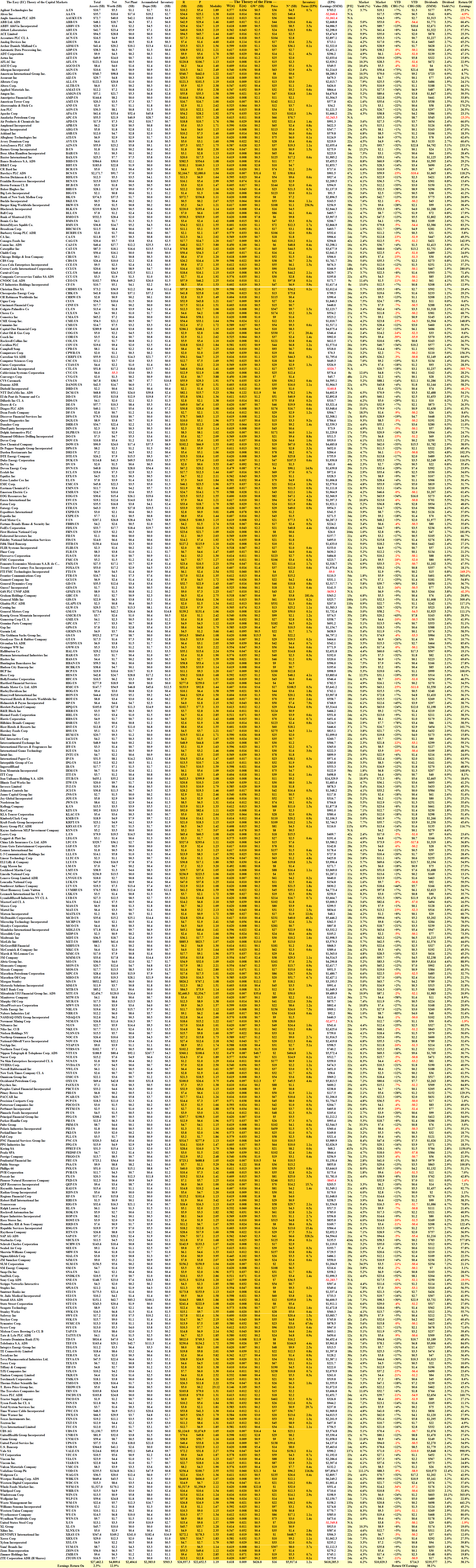 Exhibit 1: The Easy (EC) Theory of the Capital Markets – Fundamentals – Summary Data