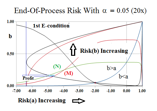 On the other hand, the N-condition defines the in-process set, (a), also occurring with probability, a, but not necessarily the same (a) as above, such that Risk(a) = 1 + log(a) = -lim (1/b^α)×log(1-b^α) as Δb→0 and a→1 and Δa→0, as above, and it defines the “deficiency” of product that needs to made-up in production in order to effect the exchange, pro rata, at a=b=1.