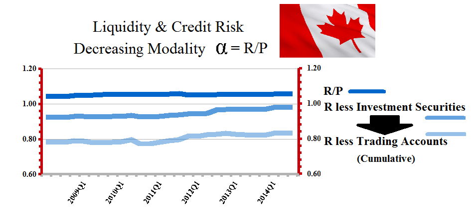 Nevertheless, there are differences in the way in which the Canadian and US banks conduct their business and, absent fraud or malfeasance, the banks get into “liquidity” and “credit” trouble when they seek “unearned”, or “opportunistic”, investment profits on their “working” capital that are outside of the services that create their “business modality” which is α≈1.10.