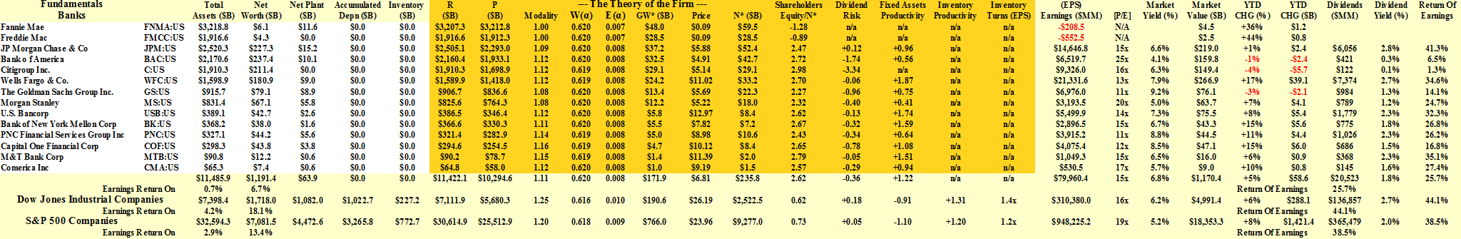 We further note that the “Enterprise Risk” (1+log(N/N*)) is around 2.50 for all the other banks, but only minus (-1.28) and minus (-0.89) for Fannie Mae and Freddie Mac, respectively, which “says” that to own these companies – Fannie Mae and Freddie Mac – at par, as per their current stock prices – is a steal. And thank you, America, but you don’t really owe us that much.