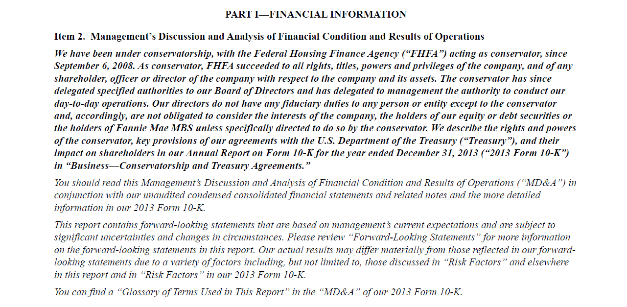 Obviously, the current management (FHFA) has a lot of flexibility in how they price the stock, and all that they have to do is leave $385.1 billion ($260.7 billion for FNMA and $124.4 billion for FMCC) behind, in the shareholders equity, of which they own 80%, in any case.