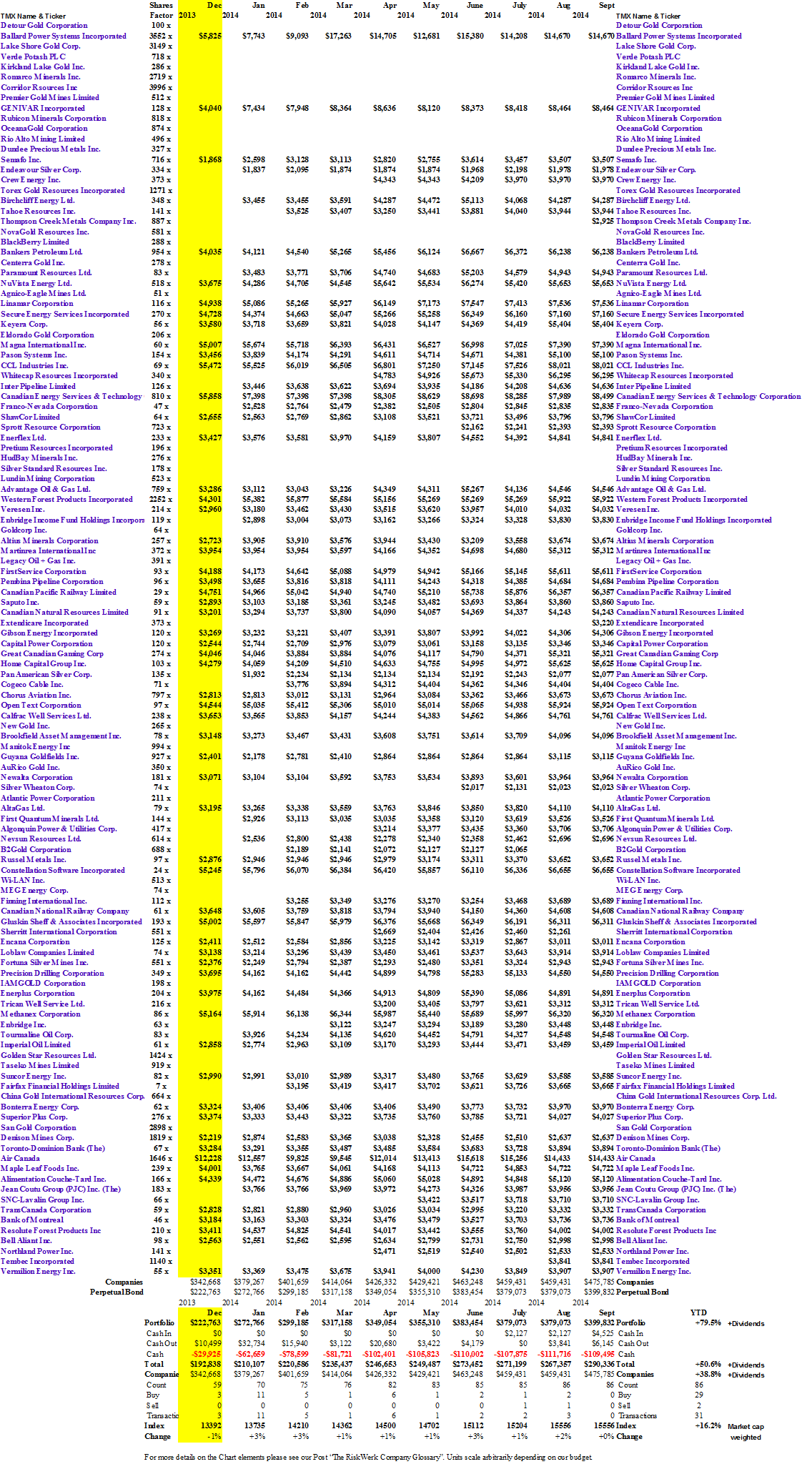 We started with 91 of those companies, but are down to 84, and we made 10 buy decisions and 17 sell decisions since December; please click on the links “(B)(N) The Canadian Hot Money Stocks Losers – Cash Flow, Portfolio, and Fundamentals” for the details.