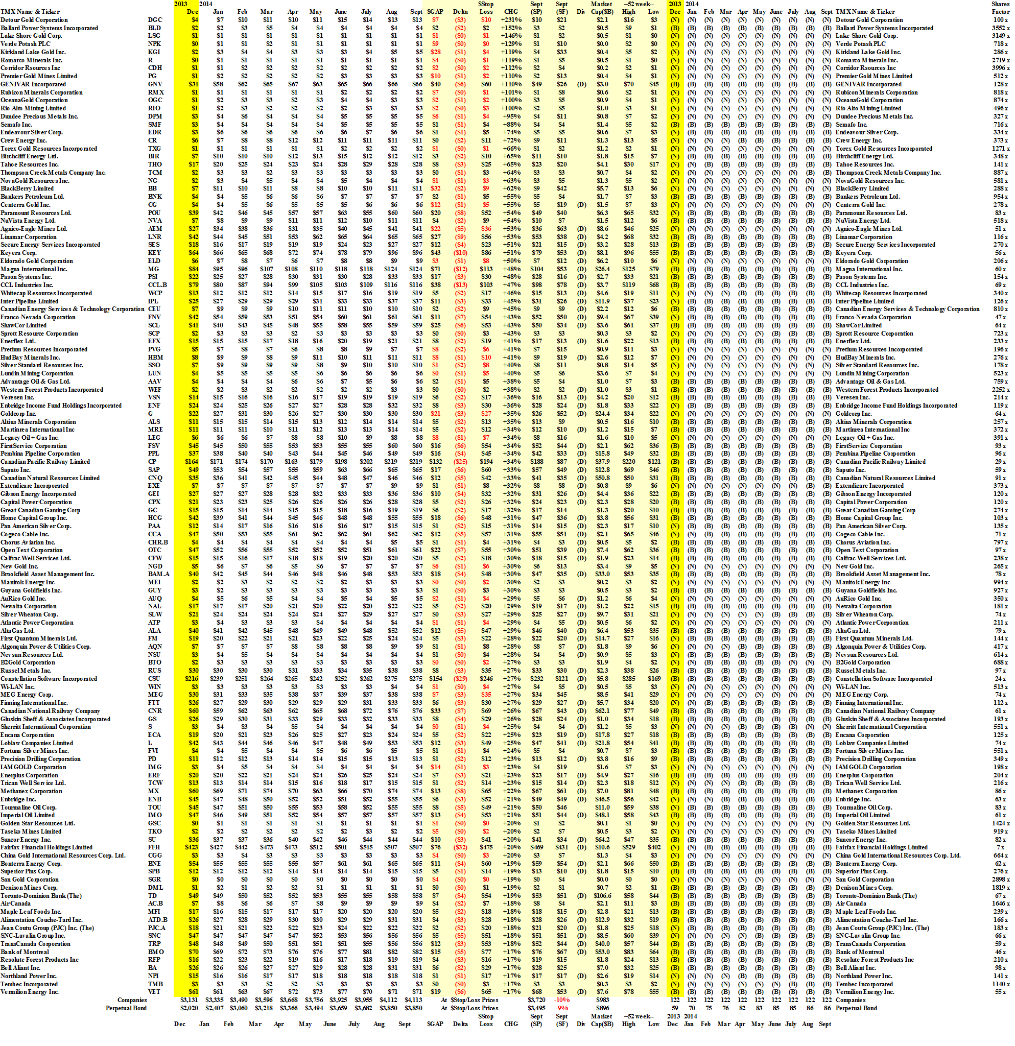Drama. The S&P TSX Composite Index is up +16% so far this year. but there are over 120 stocks that have gained more than that – much more than that – and another 150 stocks that have gained (or lost) more than that – much more than that – for which “reasons” we don’t know, in either case, because there are as many “reasons” for a stock price as there are investors and their money, and it’s the money that counts.