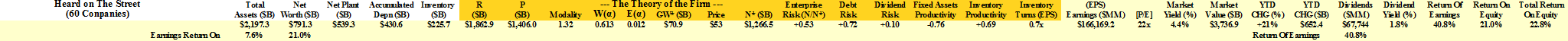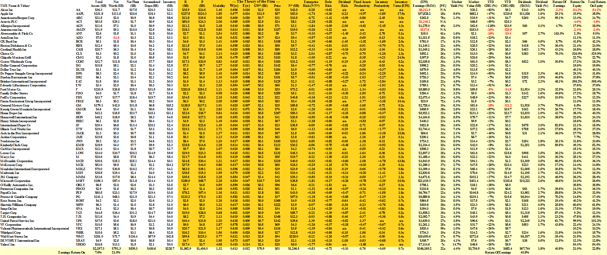 However, the per company measures show a lot of variation and each company has its own challenges; for example, Abercrombie & Fitch has a Dividend Risk of +1.49 and a Payout Rate of 163% for a Dividend Yield of 2.7%, currently, and a Fixed Assets Productivity of -3.42 (deep), and an Inventory Productivity of -1.76 (tough); please click on the link (and again to make it larger as required) “(B)(N) Heard on The Street” for further details, and the Theory of Firm for more explanations.