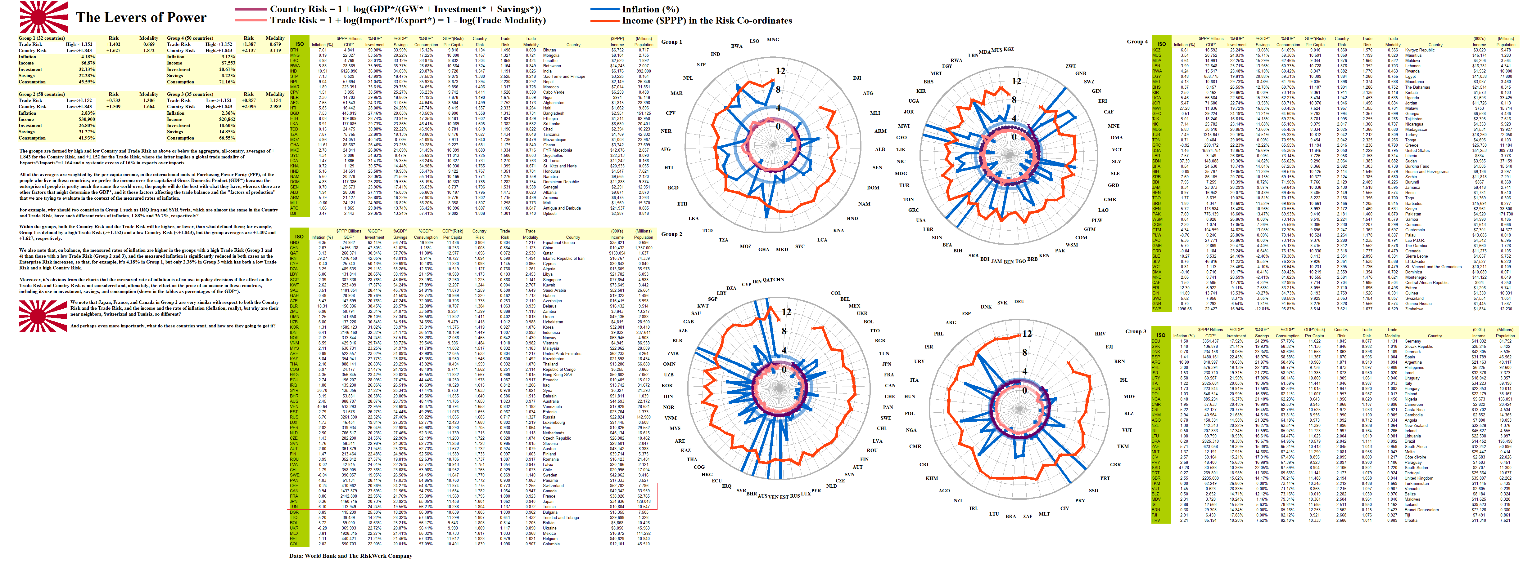 Conversely, a country with a negative Trade Risk has a continuing excess of exports over imports, and will come under competitive, and even belligerent, pressures from other countries which need to pay for it all.