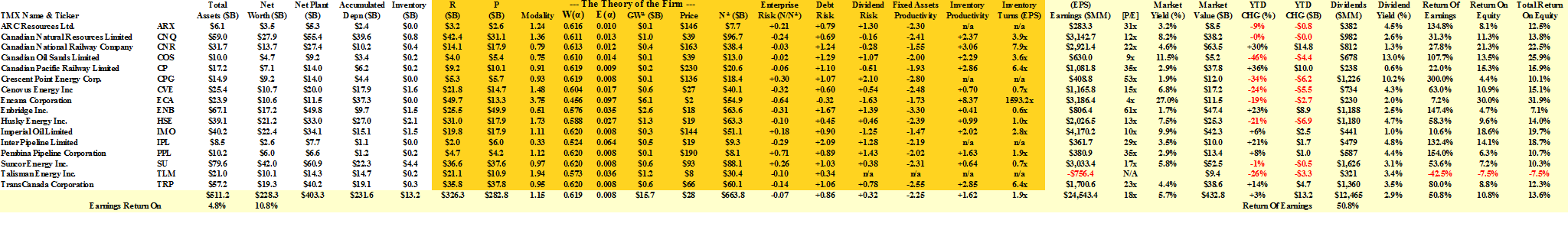 As investors in the stocks, we can’t do much about that and the entire business including five pipelines, two railways, and assorted production companies (but excluding Syncrude which has already been bought-up), “retails” for under $500 billion, and their “fecklessness” has “forced” us to take capital gains of +78% this year and a dividend yield of 2.9% on 50% of their earnings, but we’re still holding on – seven of them, down from fifteen in January; for the grim details, please click on the links “(B)(N) The Old Canadian Oil Patch – Prices & Portfolio, Cash Flow Summary, and Fundamentals“.