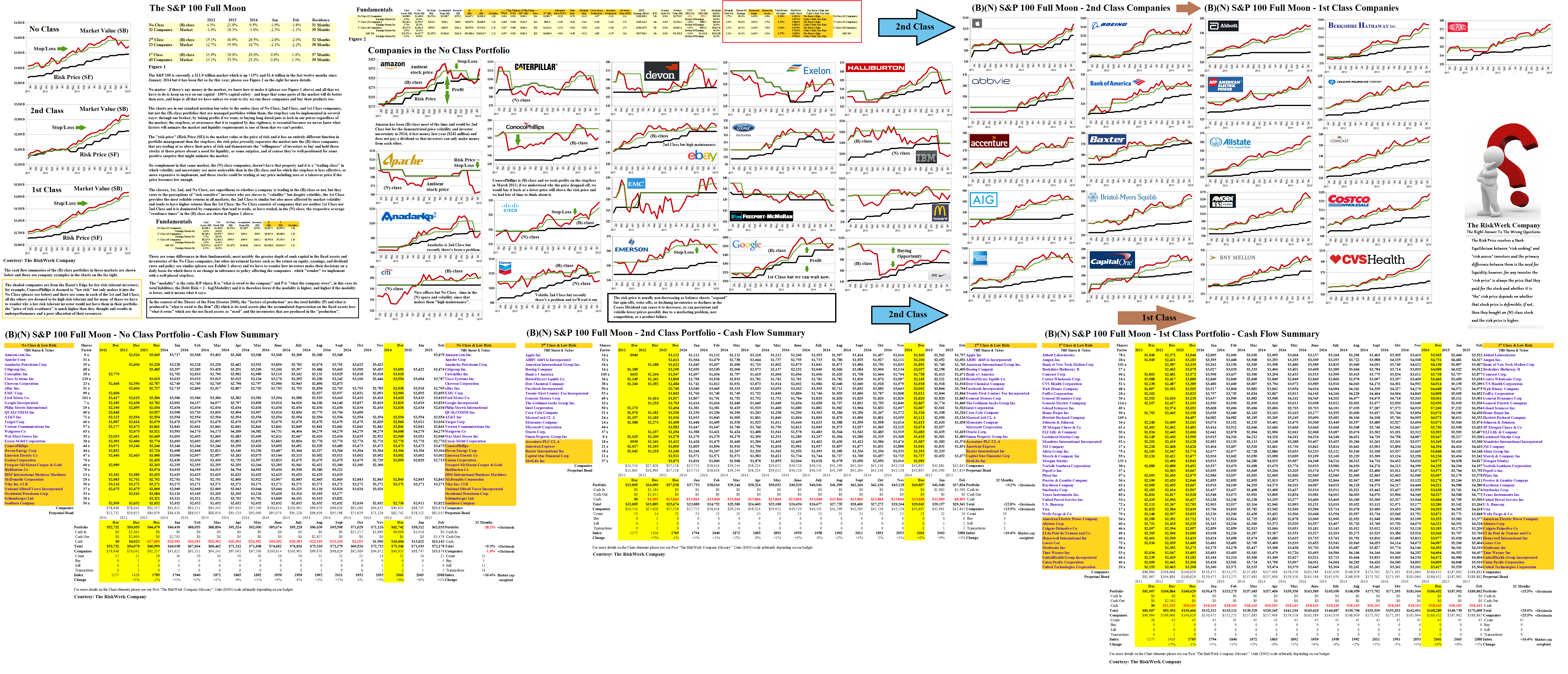 To play it safe, we need to run the (B)-class portfolio in the S&P 100, and as in the case of the NASDAQ 100, we can partition the portfolio into the 1st, 2nd, and No Class companies to study the ambient effects of “volatility” on the portfolio performance and although there is no reason to avoid any of the classes if we’re managing the portfolio as a (B)-class portfolio, the expected returns are the highest in the 2nd Class, most reliable in the 1st Class, and the lowest in the No Class; please see Exhibit 1 below (and click on it to make it larger as required).