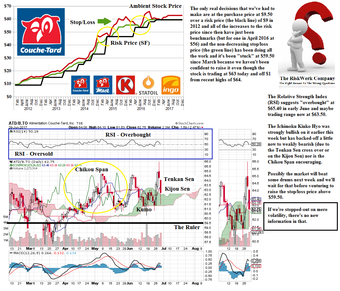 Drama. Alimentation Couche-Tard is another Great Canadian Wonder Stock that we can buy today with a dictionary (to help our broker with his pronunciation) and at a steep discount with our American dollars (which aren’t worth as much as you think). We know them as Couche-Tard in Quebec and as the ubiquitous Mac’s Convenience stores and gas stations across Canada which are all about to be re-branded as Circle-K which they also own in the US, Mexico, Europe, Iceland (one of the happiest countries in the World), Southeast Asia, and China.