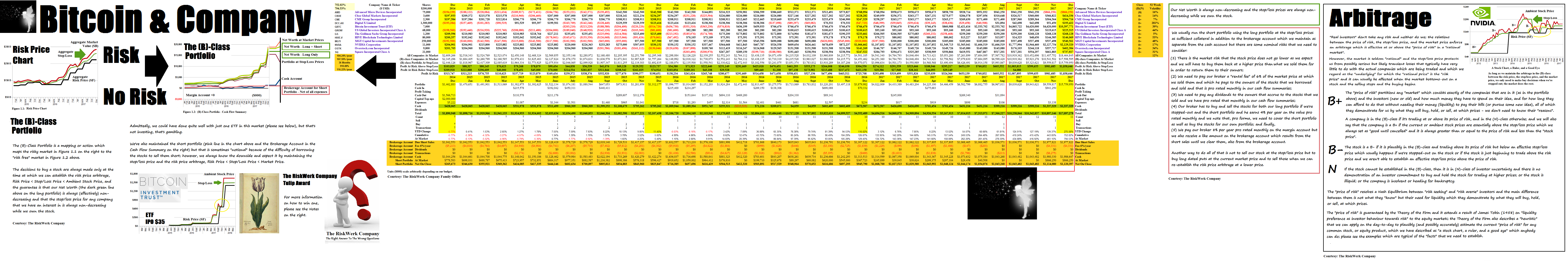 Nevertheless, in the real world there are about a dozen companies that are trading in the shadow of the Blockchain (Bloomberg, December 8, 2017, How to Make Money Off Bitcoin Without Actually Owning It) and we’ve traded them in the usual way in the (B)-Class Portfolio for returns of about +100% per year since 2014 with no risk at all.